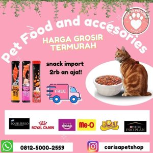 • Makanan premium: Royal Canin, Whiskas, Proplan, dll