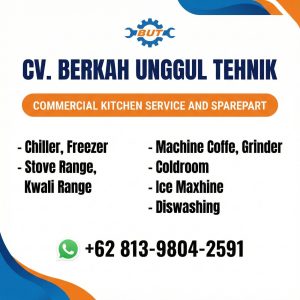 CV. Berkah Unggul Tehnik melayani perbaikan, service, dan sparepart alat dapur komersial untuk restoran, cafe, hotel, hingga central kitchen.