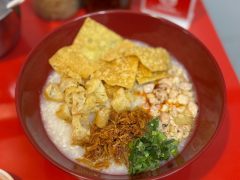 “Buburnya tipe2 bubur ayam oriental dan ayamnya pake ayam kampung. Toppingnya banyak. Paling suka makan bubur pake sate ampela dan acar rawit. Kmrn beli 2 porsi gratis 1 pcs bakso goreng. Bakso gorengnya agak beda menurut aku, lebih kerasa ikannya dan teksturnya lebih tebal.”Wijayanti Kartika Nhariswary