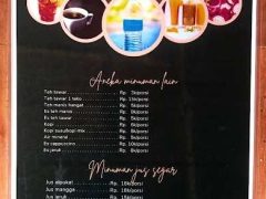 Es Teh Manis, Es Jeruk, Es Cappuccino, Kopi Susu, hingga aneka Jus Buah Segar (Alpukat, Mangga, Buah Naga, Tomat).
