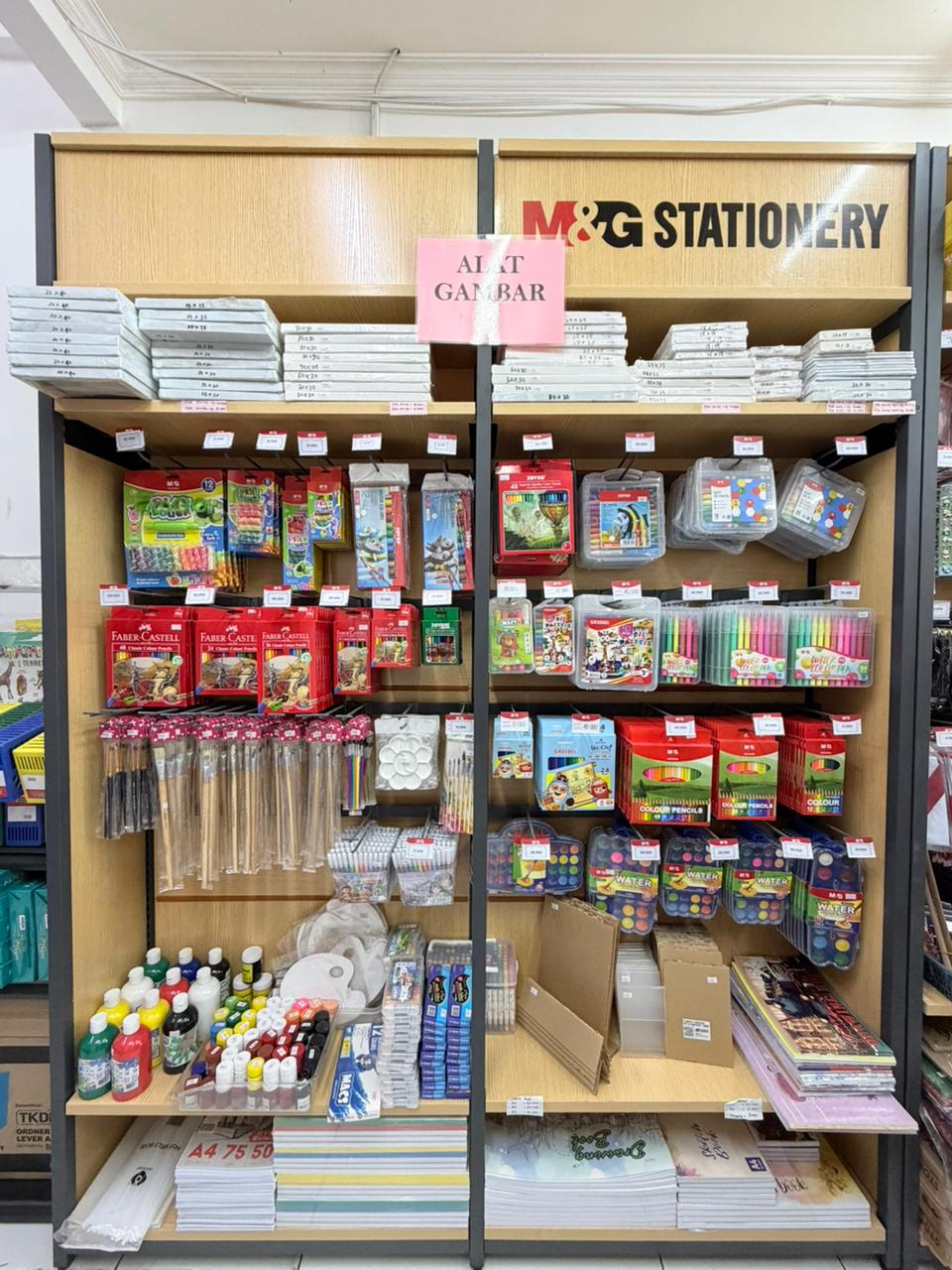 ATK super komplit, dari kebutuhan sekolah hingga perlengkapan kantor.